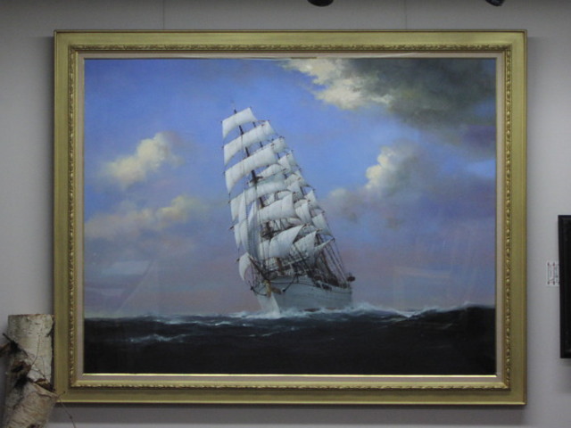 この油彩帆船画制作にあたり住重様追浜造船所に建造プロセスを追って 足掛け3年通い続け取材完成致した作品です。 |